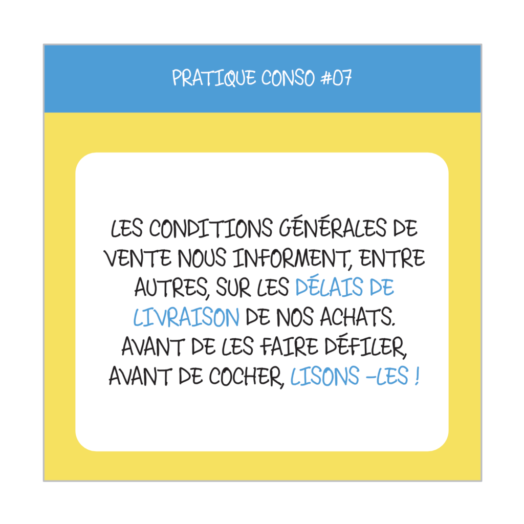 Tournures de phrases compliquées et vocabulaire technique, les conditions générales de vente (CGV) sont rarement lues par les consommateurs. Nous nous contentons bien souvent de cocher la case « j’accepte ». Pourtant il y a des informations importantes concernant le produit ou le service que nous achetons, la livraison par exemple.